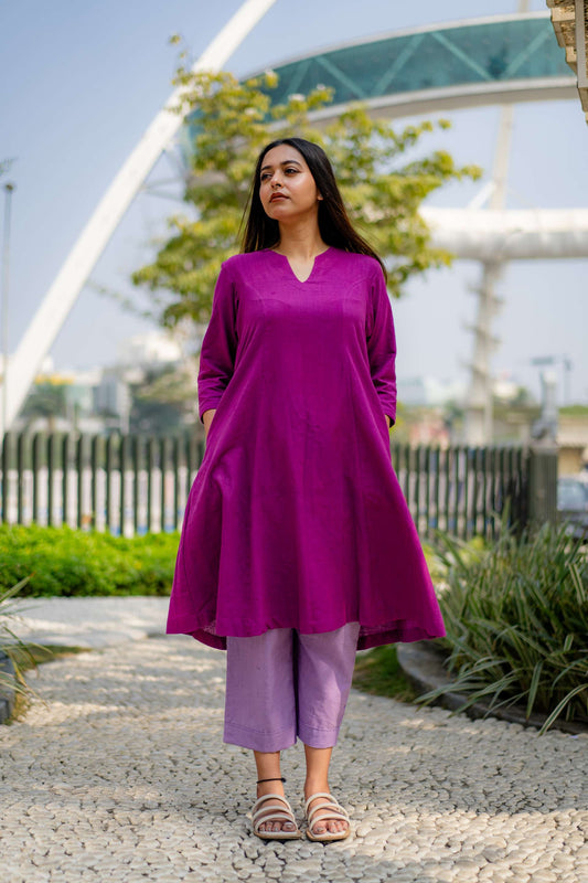 A Line Purple Kurta with Lilac Straight Pant